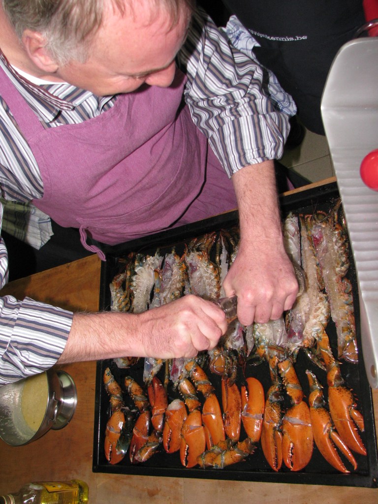 6 verse kreeften van ongeveer 700 gr, 3 dl cognac, 450 gr boter,