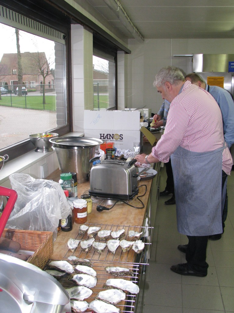 - Leg nu in iedere oesterschelp een oester en overgiet deze met de saus.