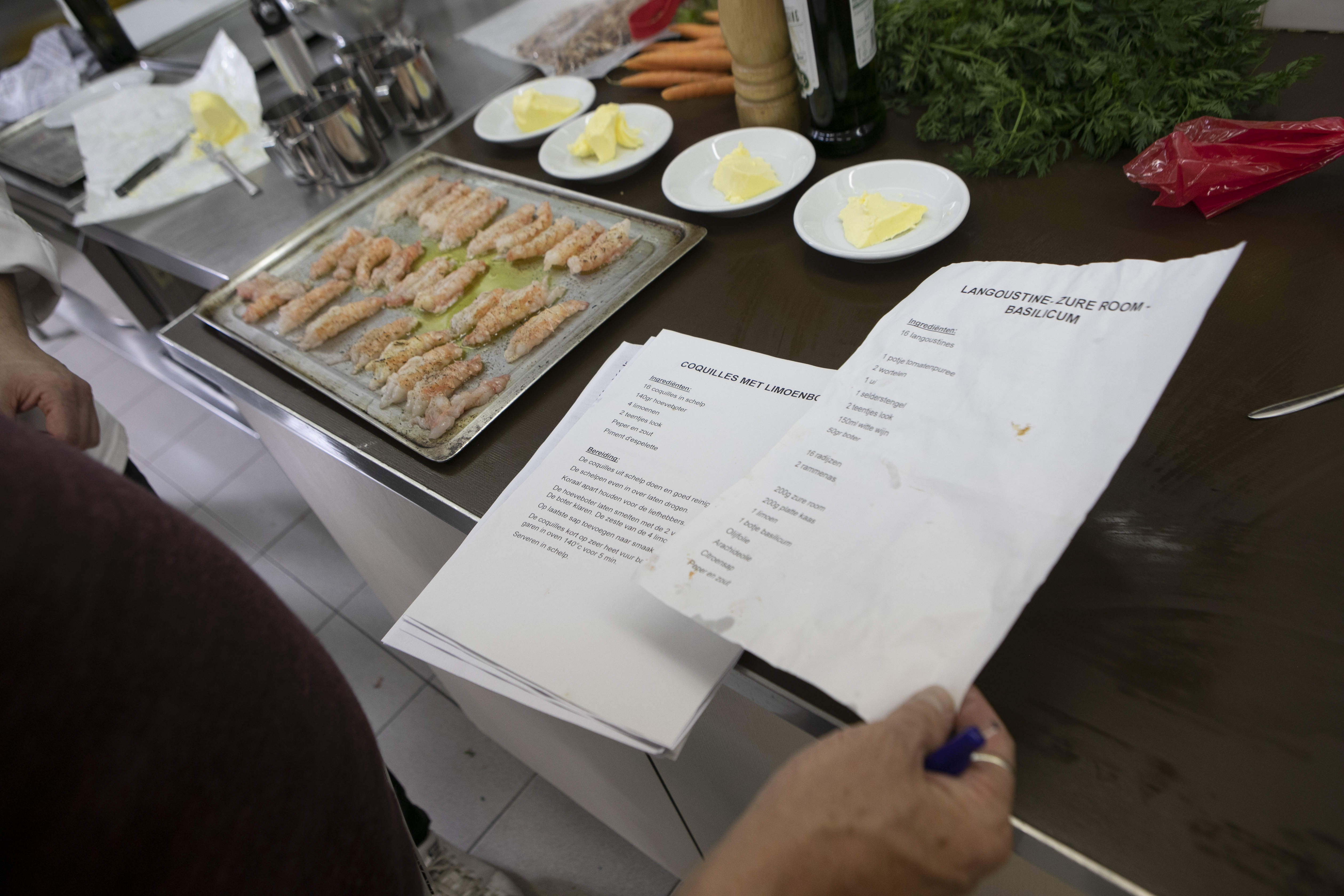 - De langoustines ontdoen van schaal en kop. Deze apart houden.