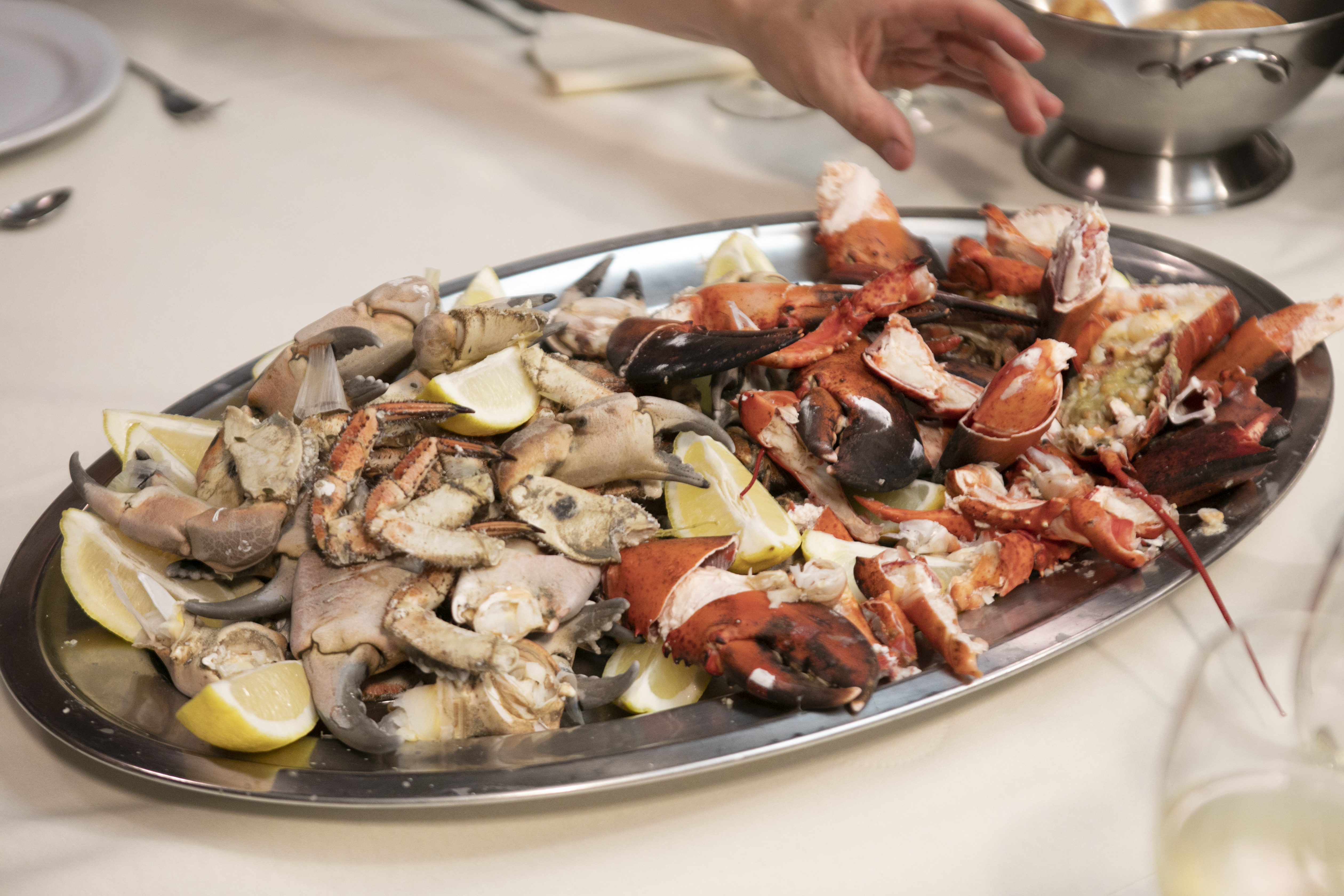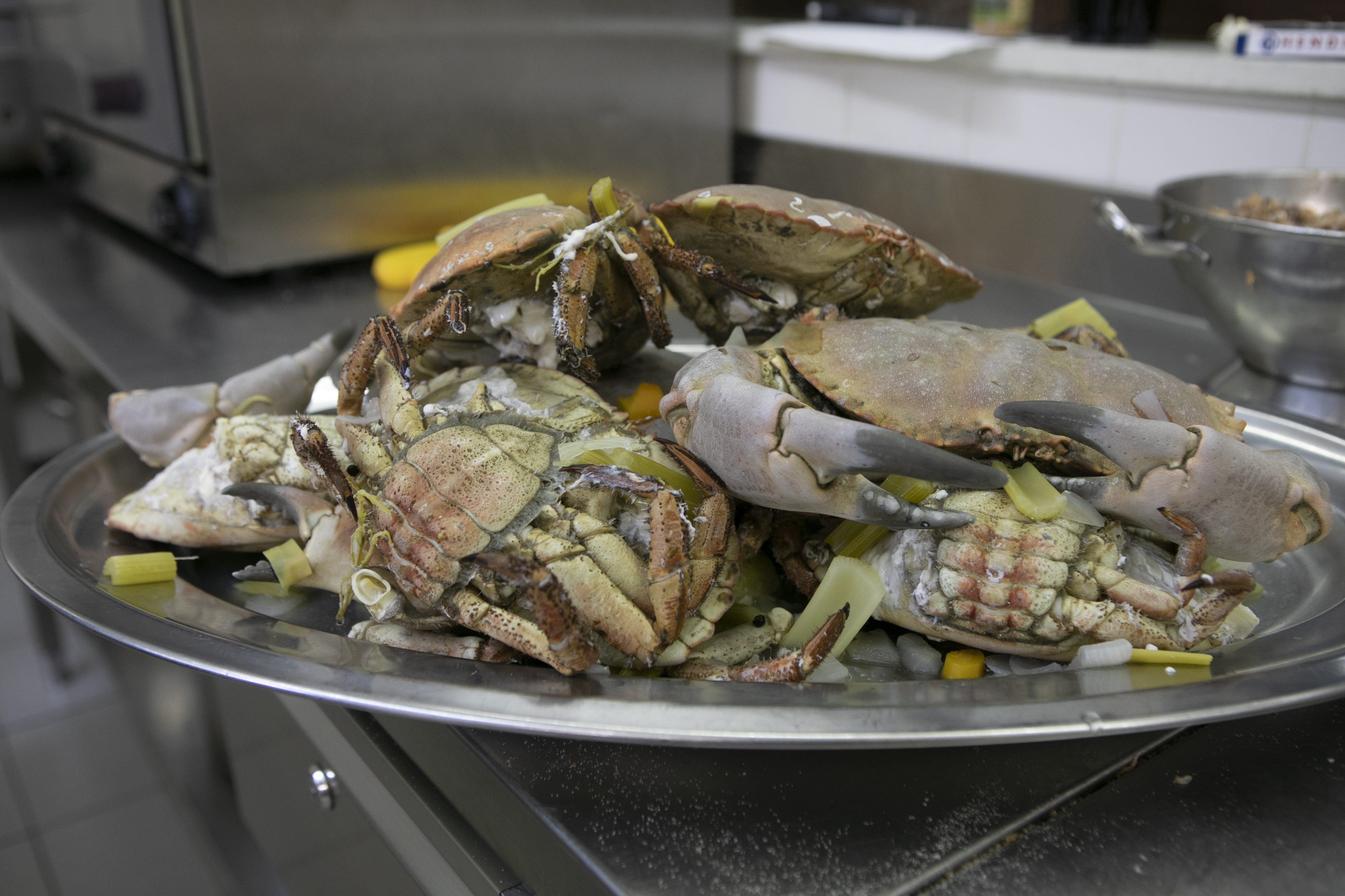 - De Noordzeekrabben in kokende bouillon voor 15 min laten koken.