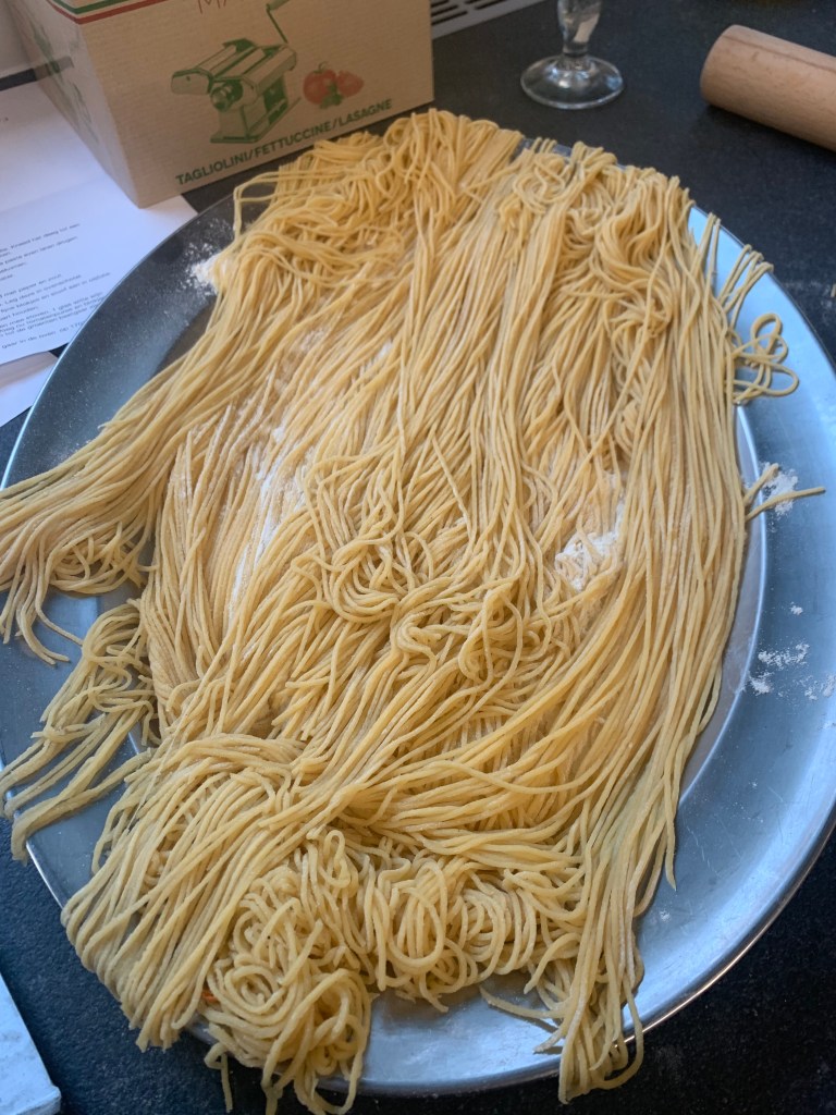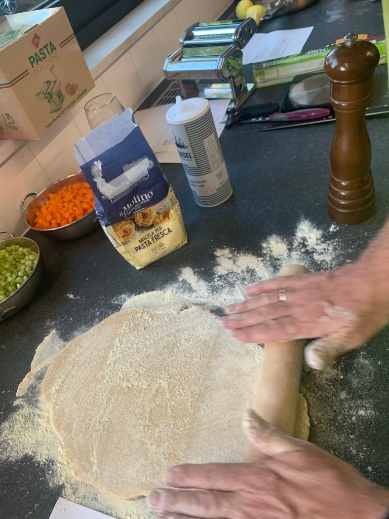 - Meng de bloem met 5 eieren en scheutje olie. Kneed het deeg tot een soepel deeg. Laat het minstens 30min rusten.