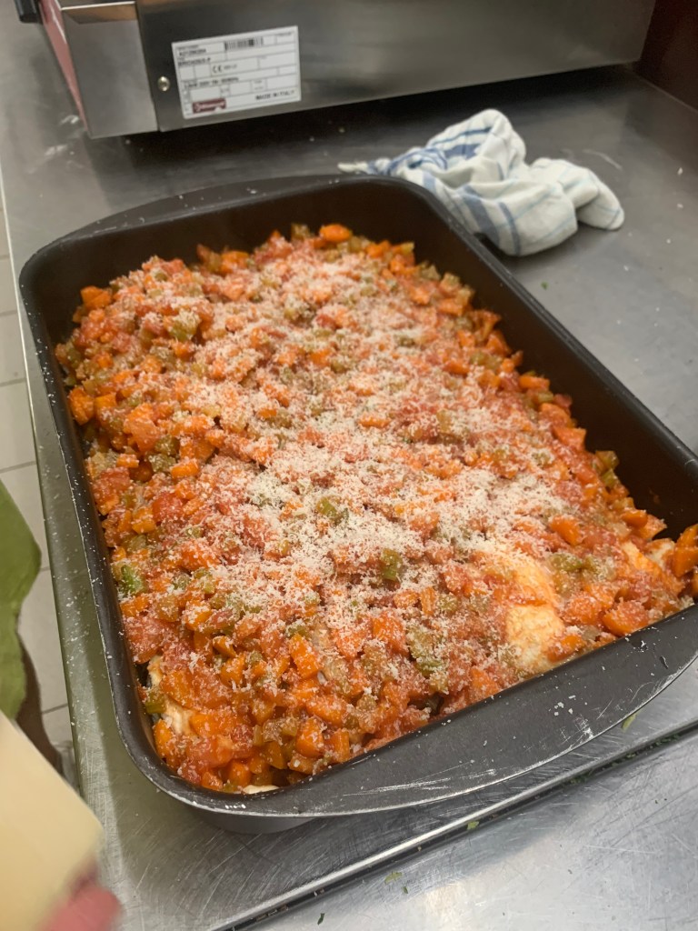 - Giet de saus over de vis en gaar in de oven op 170°c voor 10 min tot vis volledig gaar is.