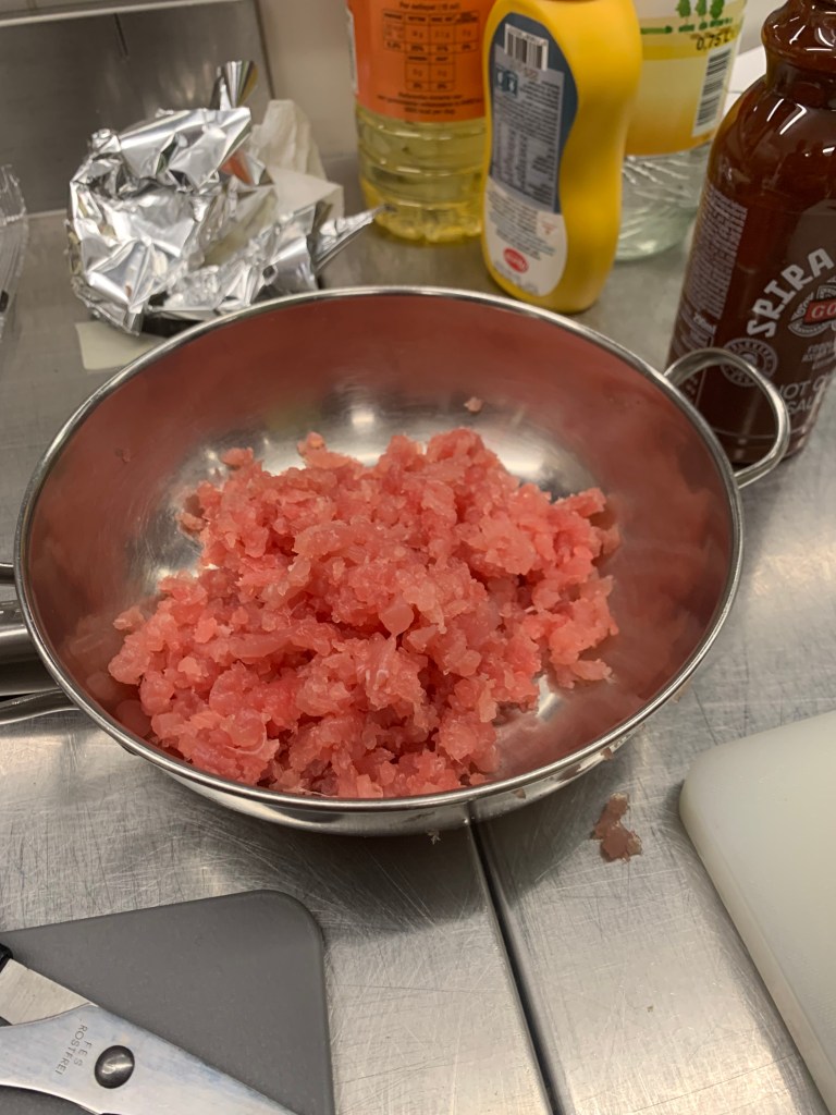- De Tonijn fijn snijden.