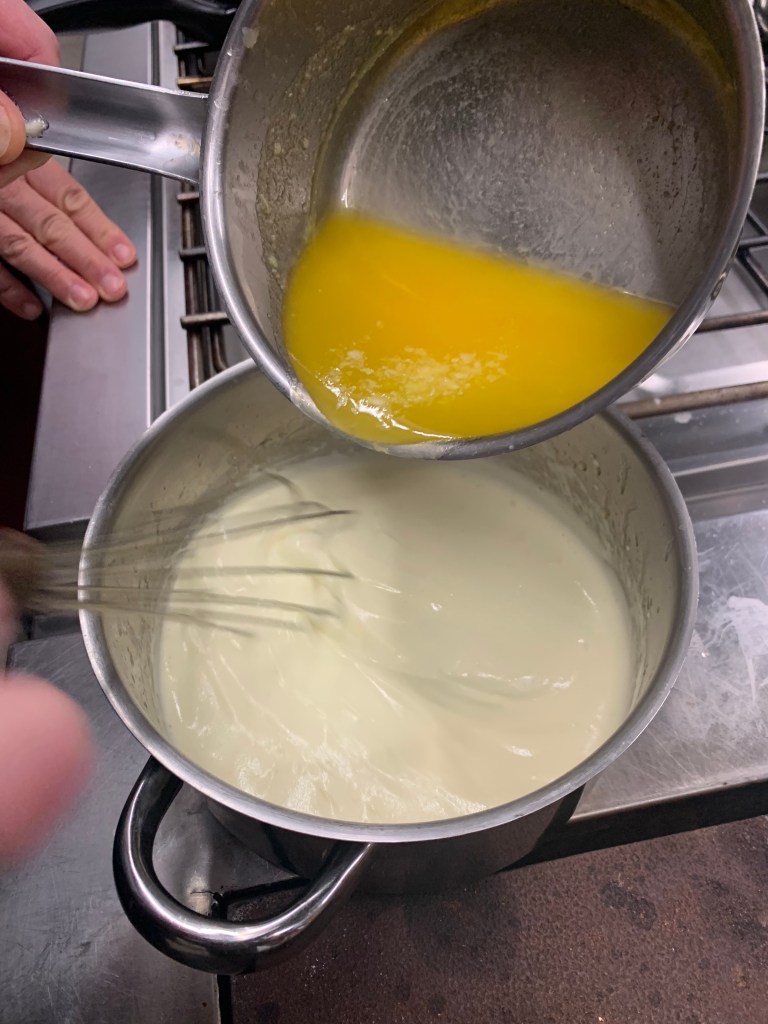 - Eiwitten met poedersuiker opkloppen.