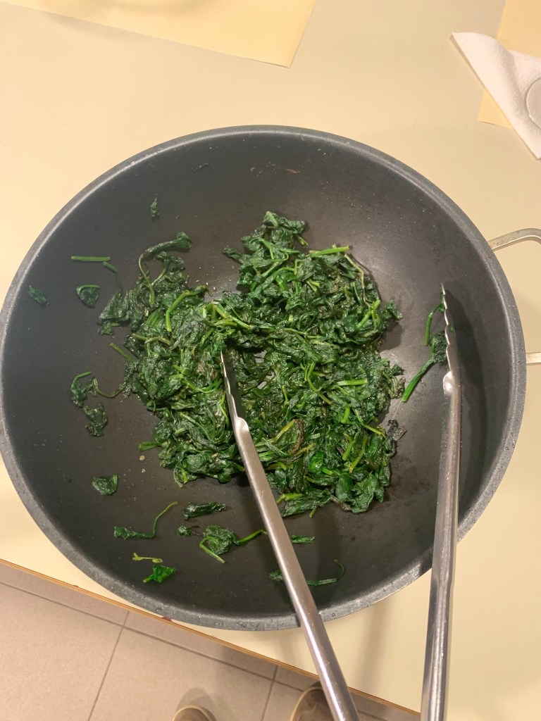 - De spinazie wassen en mee laten stoven.