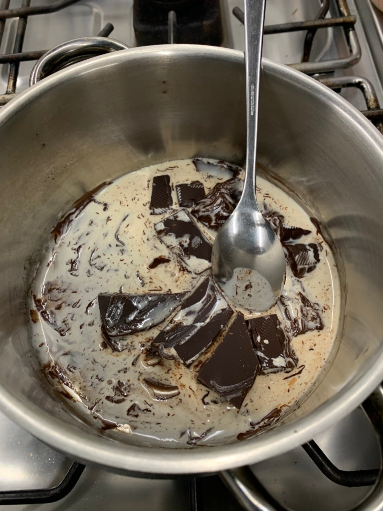 - Voeg op laatste de room toe. Eventueel een snuifje zout toevoegen.