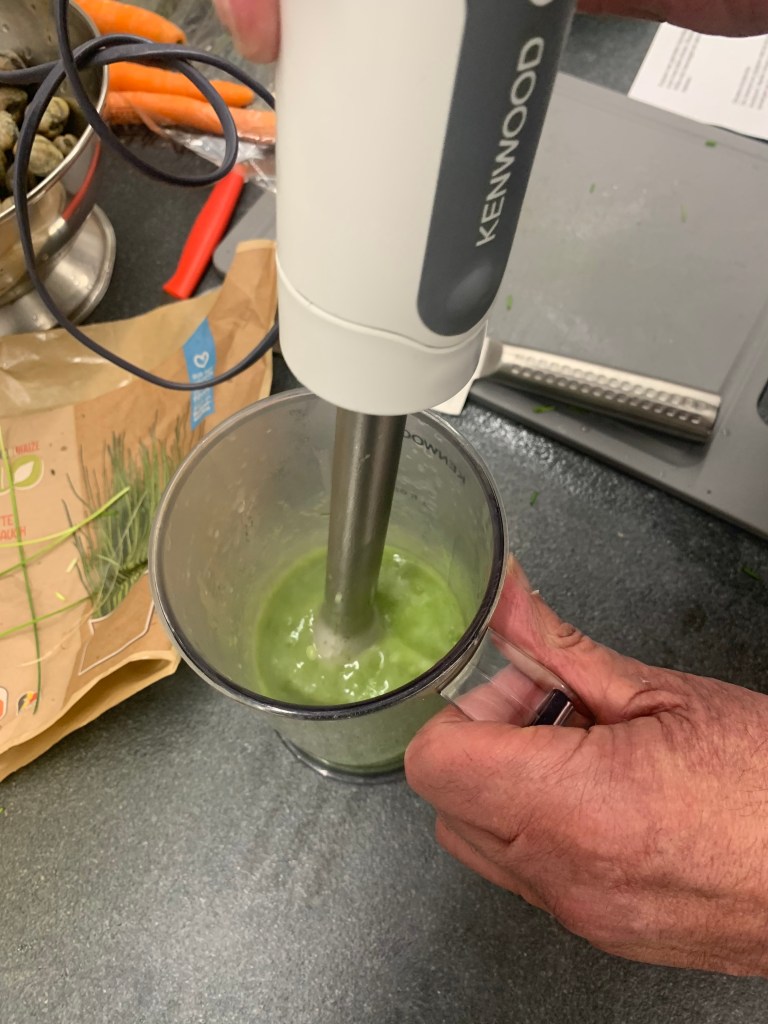 - Groeten fijn snijden.(selder, wortel, ajuin). Deze aanstoven in boter.