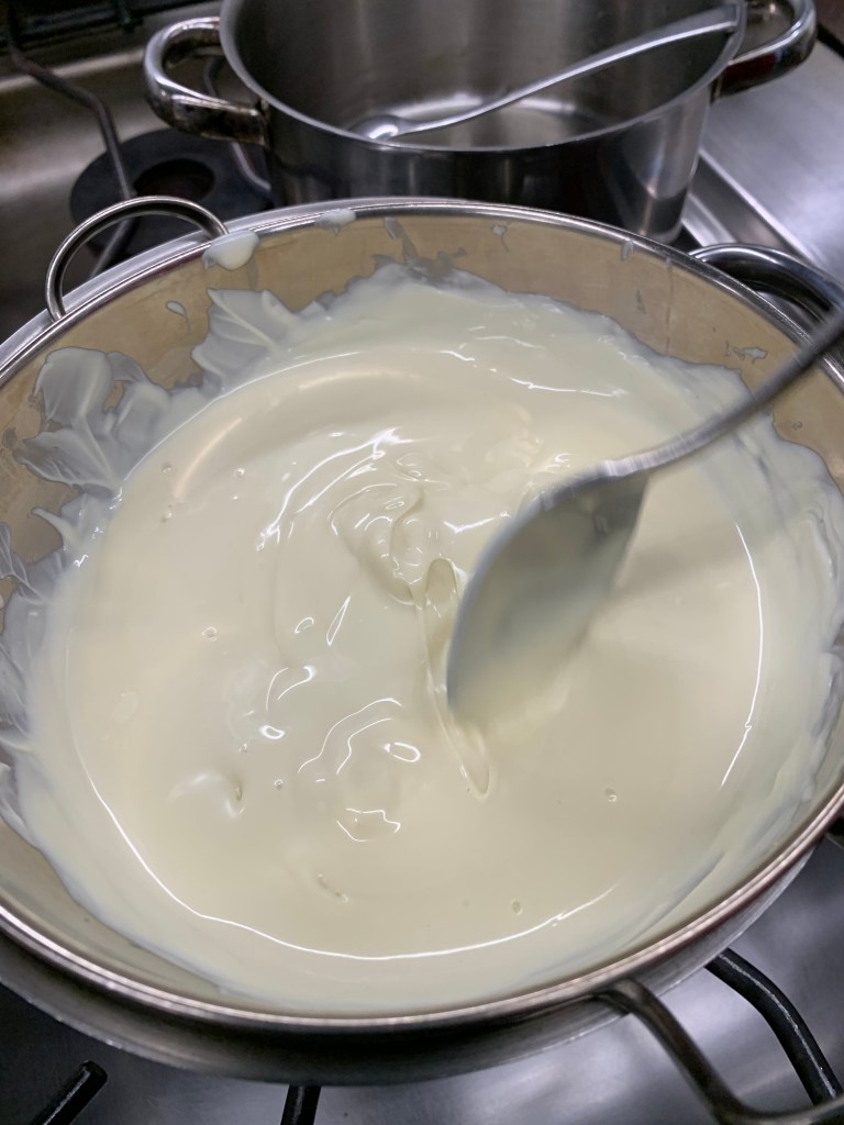 - Platte kaas mengen met suiker en in spuitzak doen.