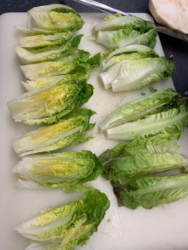 - Was +/- 300gr prei. Gril deze in een hete grillpan. Snij in stukken.