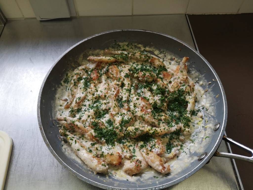- Verwarm in een steelpan op hoog vuur de rest van de boter tot zich schuim vormt, maar laat niet bruin worden.