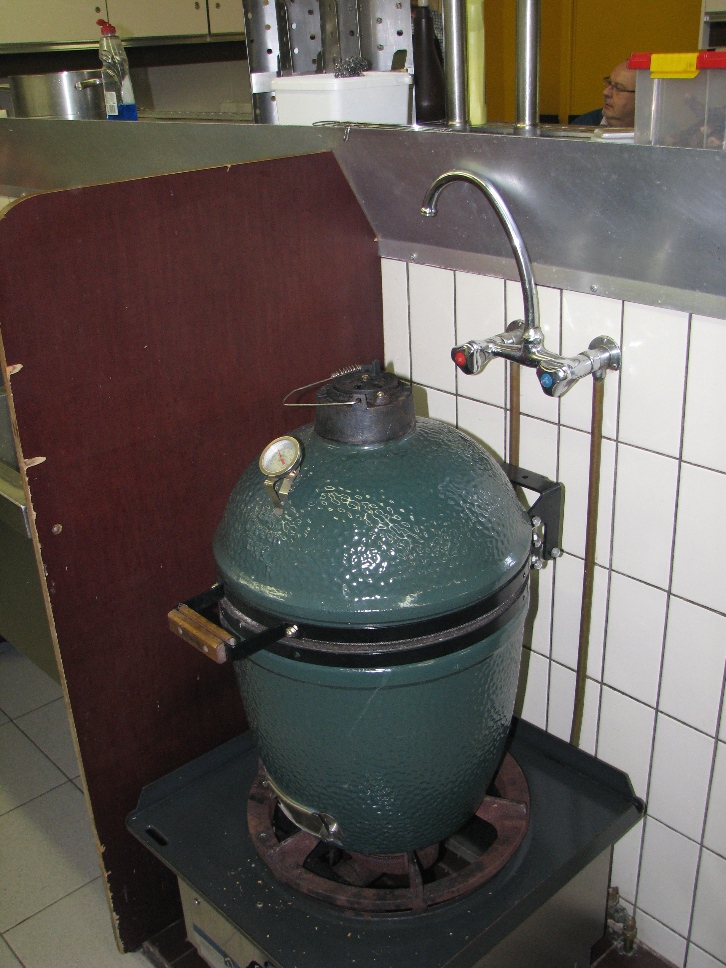 Plaats vervolgens het vlees in de Green Egg voorzien van een kerntemperatuurmeter.