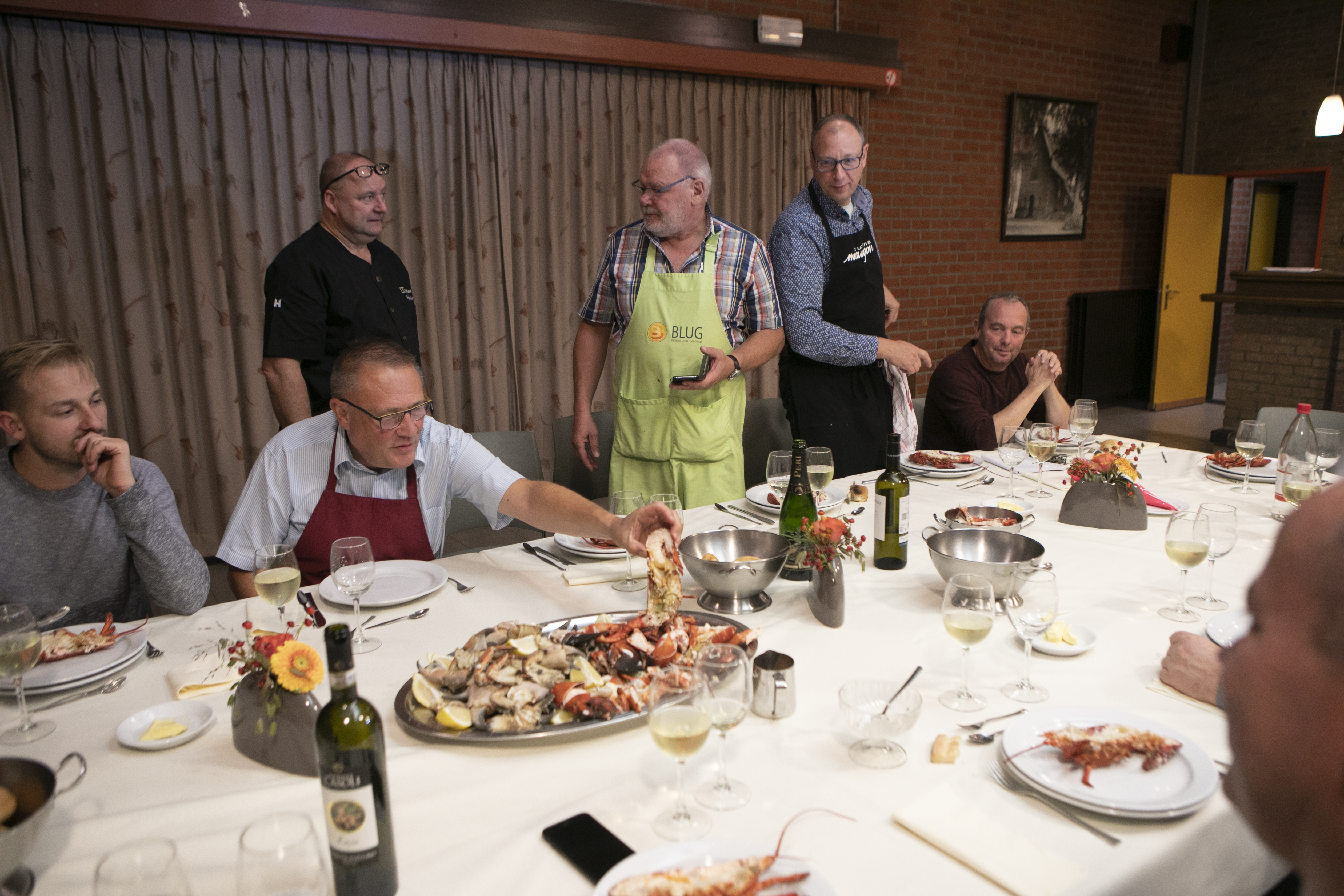 - Nadien halveren en scharen af de kreeft halen.