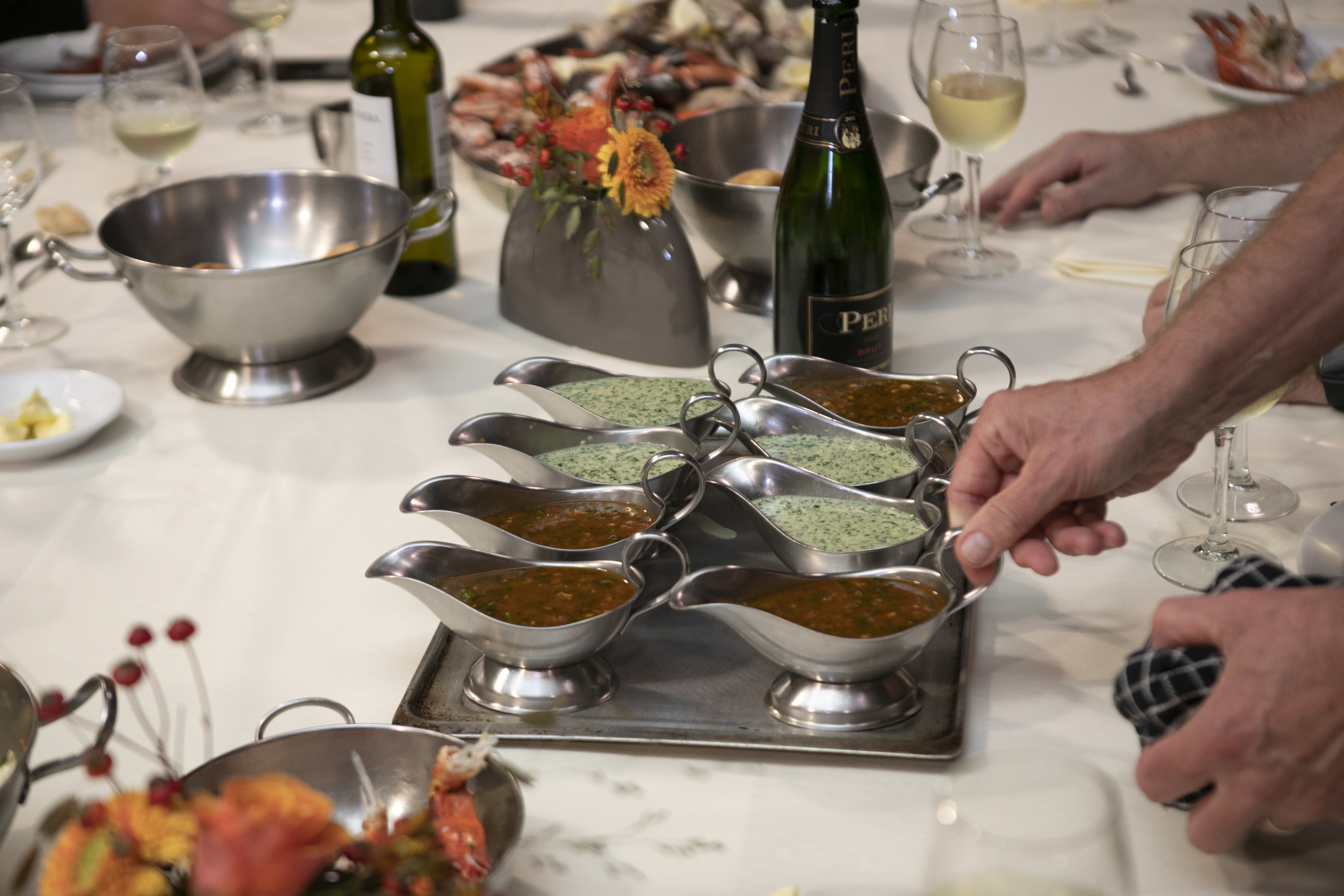 - De kleine pootjes van kreeft verwijderen en in saus laten trekken.