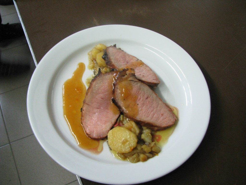 Serveer het vlees in plakken met boerenkoolpuree met een variatie van geroosterde knolgroenten.