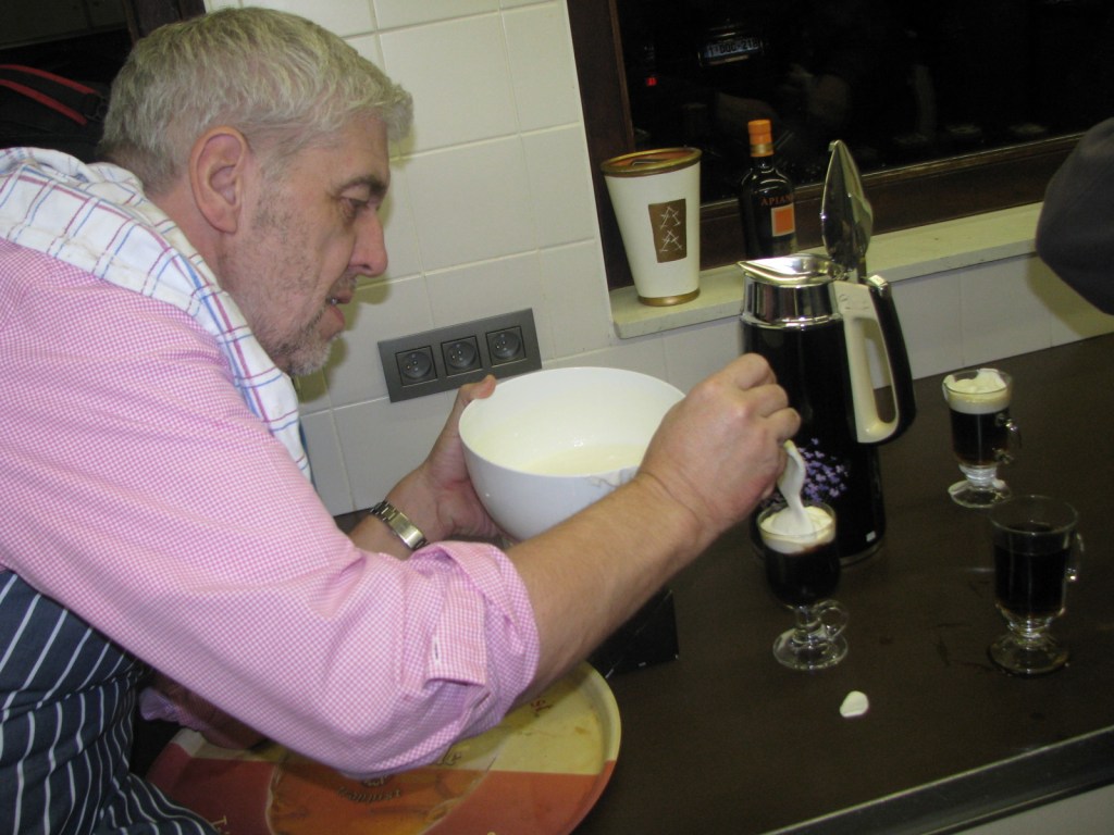 - Stort het beslag in de Irish coffee glazen en laat nog ongeveer een vinger ruimte voor de slagroom achteraf.