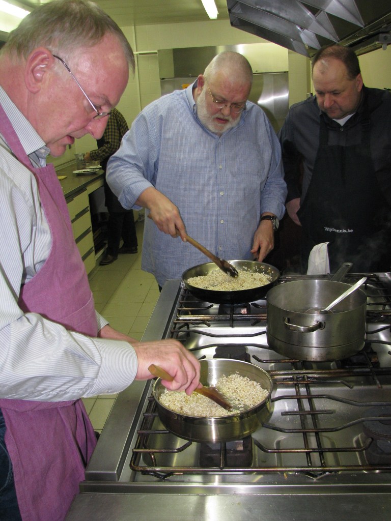 Voor de risotto: 2 liter groentenbouillon, 2 el boter, 2 sjalotten, 600 gram carnaroli rijst, pezo, 150 gr gemalen parmezaan