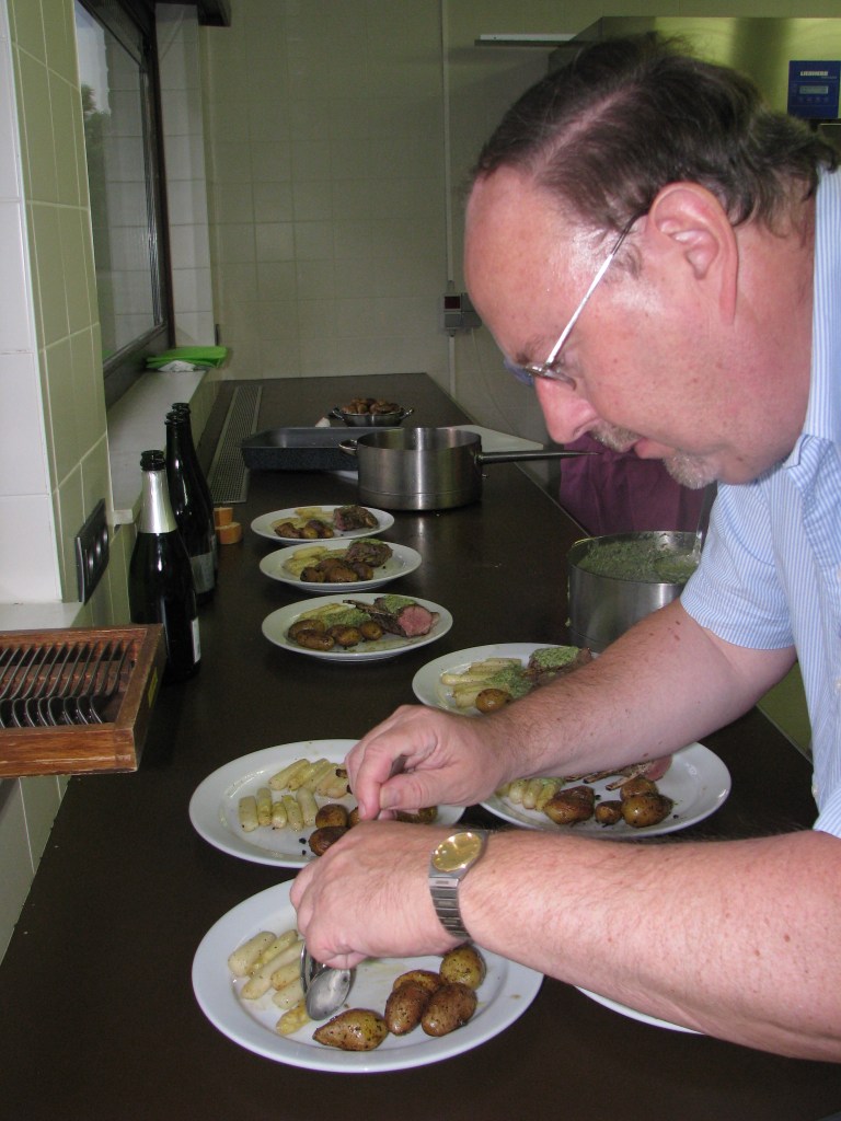 6 Lamskronen (1 lamskroon = 8 koteletjes) – tijm – rozemarijn – teentjes look – 1,5 kg asperges – pezo