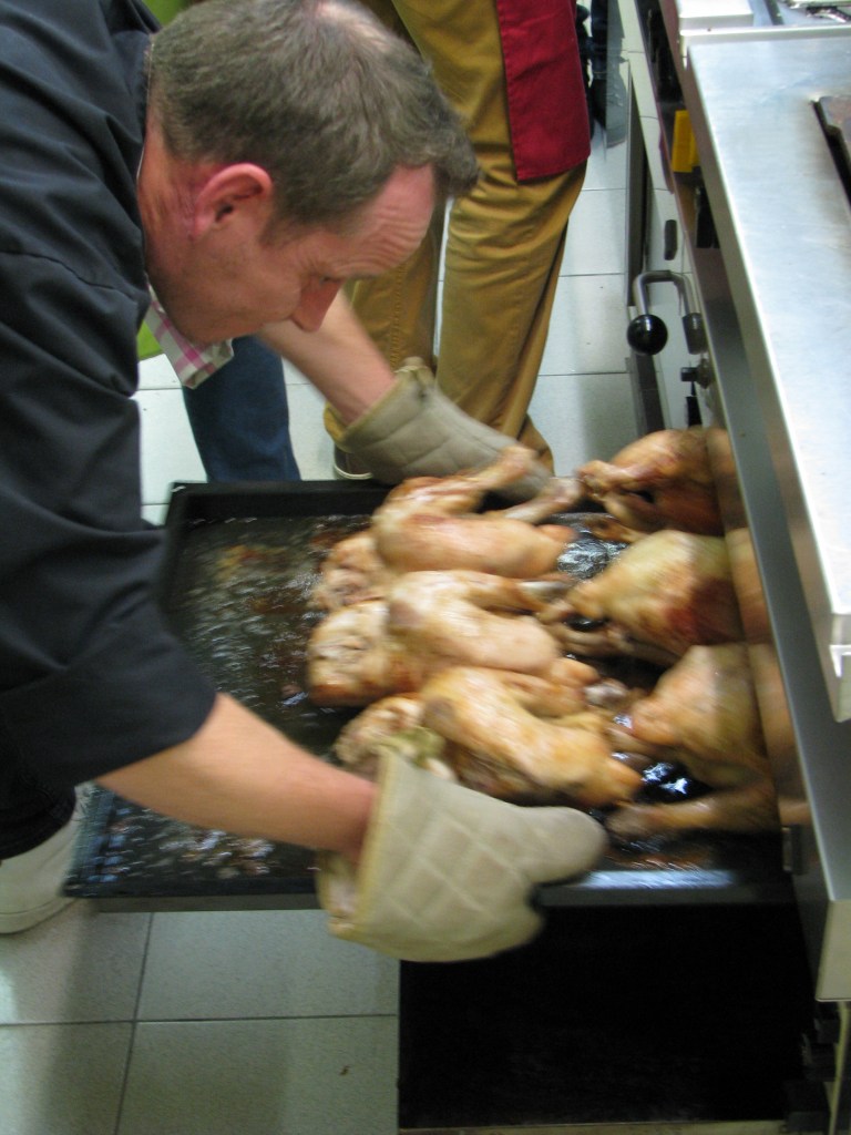 - De kippen in een warme oven garen op 180graden voor 1uur.