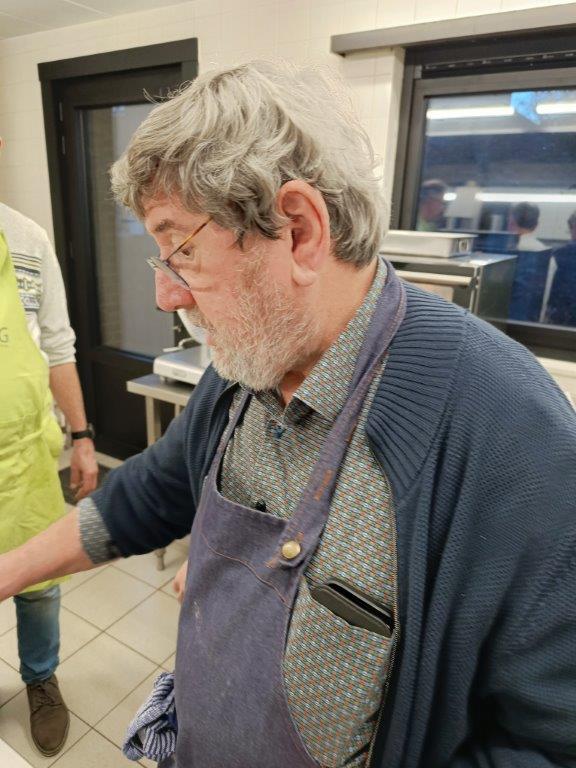 Kalf / Miso / Asperge Posted on 18 april 2024 by Bottle Case 1 Ingrediënten: 1,2kg kalfshaas 17 asperges (medium) 1 citroen 22 zilveruitjes of 11 kleine sjalot Rode wijn Suiker 200gr hoeveboter Potje gedroogde paddenstoelen 500ml kalfsfond 1 sjalot 1 wortel 1,5kg vastkokende aardappelen Arachideolie 1 koolrabi Misopasta Platte peterselie 100gr tuinbonen 50gr room Bereiding: Zilveruitjes: Zilveruitjes kuisen en in boter stoven. Suiker toevoegen en nadien onder zetten met rode wijn. Laten inkoken tot de vloeistof stroperig wordt. Asperges: Asperges schillen. De schil apart houden. Boter smelten in diepe pan. Zeste van 1 citroen toevoegen. Hierin de asperges leggen, beetje vocht toevoegen en op een laag vuur garen. Saus: De gedroogde paddenstoelen in kalfsfond laten trekken voor 10 min. In een sauspan de gesneden wortel, sjalot aanstoven in olie. Nadien de schillen van de asperges toevoegen. Even meestoven. Nadien het vocht met de paddenstoelen toevoegen. Laten koken voor +/- 20min. Nadien zeven. Verder inkoken. Afwerken met klontje boter en kruiden. Aardappelen: De aardappelen in kasteelvorm snijden. Nadien stomen of koken in gezouten water. Nadien kleuren in boter Koolrabi: In kleine brunoise snijden. Kort aanbakken in olie. Nadien afwerken met klein kontje boter en miso pasta. Tuinbonen: De tuinbonen blancheren in gezouten water. Nadien ontvliezen 10 tal bonen apart houden. De rest mixen met scheutje room. In spuitzak doen. Vlees: Kort aanbakken in hete pan. Nadien verder garen in oven op 160°c. Kern +/- 59°c Bord afwerken