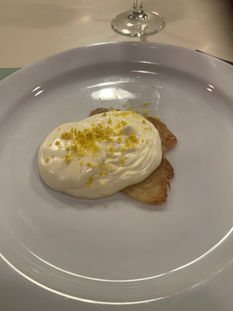 - Dit afwerken met amandel, framboos, munt, ganache en saus